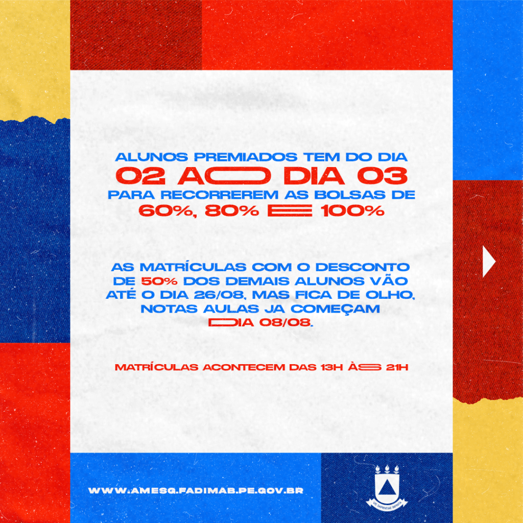 🚀Alunos premiados tem do dia 02 ao dia 03 para recorrerem as bolsas de 60%, 80% e 100%