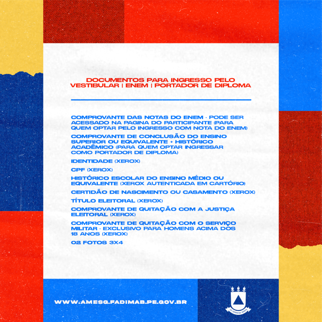 🚀Documentos para ingresso pelo vestibular/enem/portador de diploma